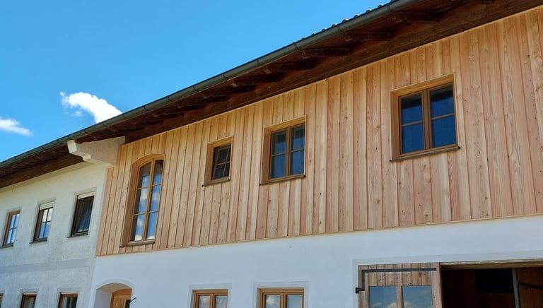 Hochwertiger Schutz und ansprechende Optik: Holzverschalungen schützen die Bausubstanz und verleihen Gebäuden zugleich einen natürlichen Charakter. Je nach Stil und Wunsch verwenden wir unbehandeltes, geöltes oder gestrichenes Holz.