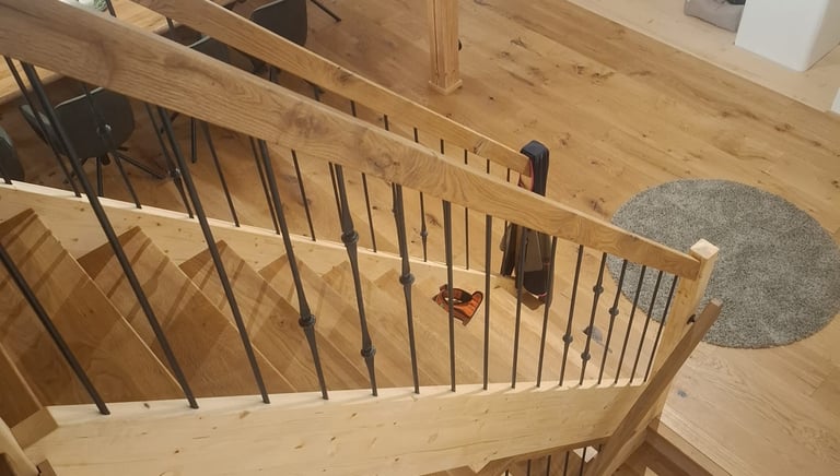 Ob Neubau oder Sanierung – wir fertigen und verlegen Treppen und Böden aus massivem Holz mit höchster Präzision. Jedes Stück ist ein Unikat, das Natürlichkeit, Langlebigkeit und handwerkliche Qualität vereint. Für ein warmes Wohngefühl und bleibende Wertigkeit.