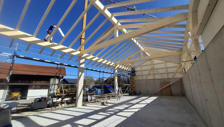 Ob Neubau, Sanierung oder Aufstockung – wir fertigen Dachstühle mit höchster Präzision und handwerklichem Können. Jeder Dachstuhl wird individuell geplant, millimetergenau zugeschnitten und fachgerecht montiert. So entsteht eine stabile, langlebige und ästhetisch perfekte Grundlage für Ihr Dach.